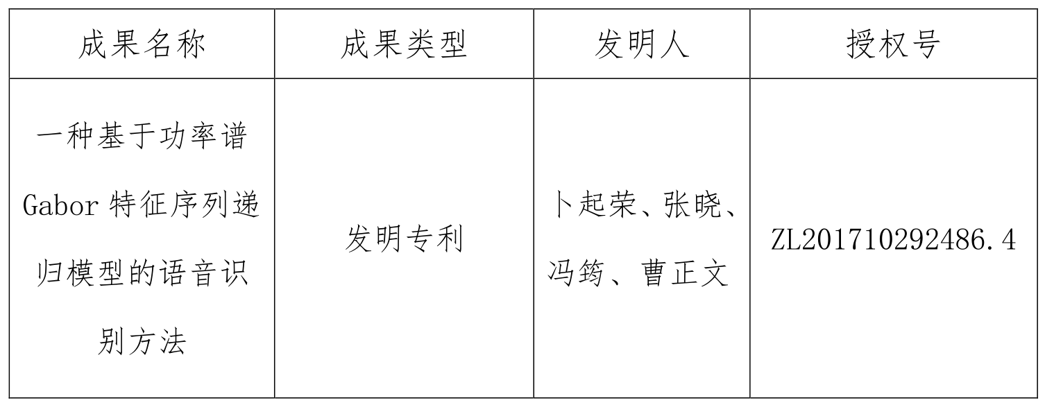 “一种基于功率谱Gabor特征序列递归模型的语音识别方法”。