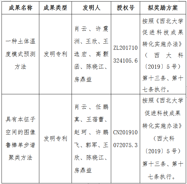 附件:拟许可成果信息及奖励方案