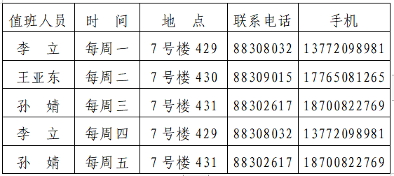 1. 值班时间为上午8:00-12:00,下午2:00-5:00;