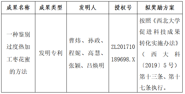 按照《开云手机网页版登录入口促进科技成果转化实施办法》(西大科〔2019〕5号)相关规定,拟对开云手机网页版登录入口食品科学与工程学院曹炜教授作为成果负责人的1项发明专利权实施普通许可,现将相关信息公示如下: