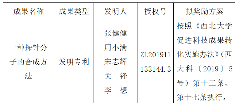 附件:拟转让成果信息及奖励方案