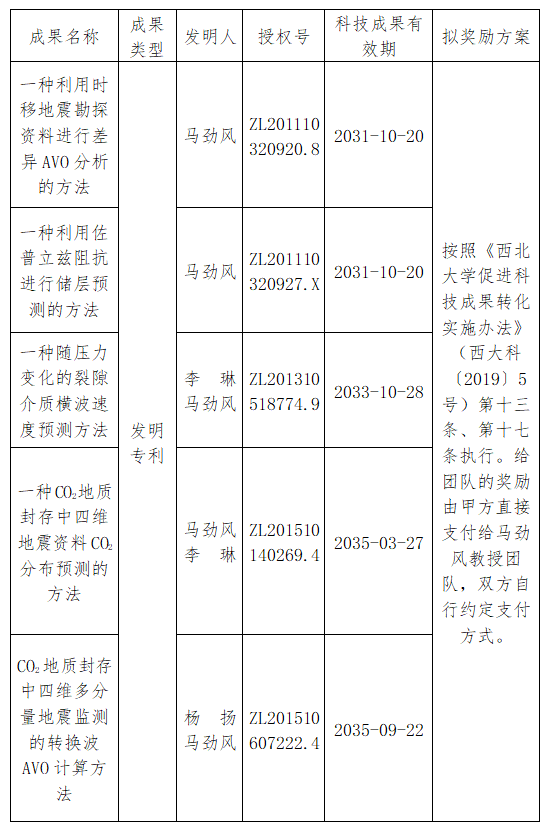 按照《开云手机网页版登录入口促进科技成果转化实施办法》(西大科〔2019〕5号)相关规定,经科技成果转化工作小组审议,校长办公会审定通过,拟对开云手机网页版登录入口地质学系马劲风教授作为成果负责人的5项发明专利权实施普通许可,现将相关信息公示如下: