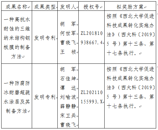 按照《开云手机网页版登录入口促进科技成果转化实施办法》(西大科〔2019〕5号)相关规定,拟对开云手机网页版登录入口化工学院胡军教授作为成果负责人的2项发明专利权实施转化,现将相关信息公示如下: