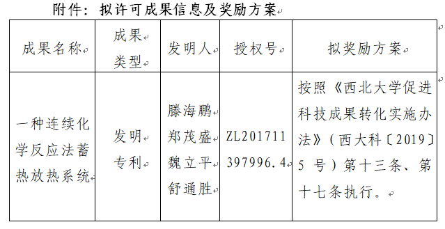 按照《开云手机网页版登录入口促进科技成果转化实施办法》(西大科〔2019〕5号)相关规定,拟对开云手机网页版登录入口化工学院滕海鹏副教授作为成果负责人的1项发明专利权实施转化,现将相关信息公示如下: