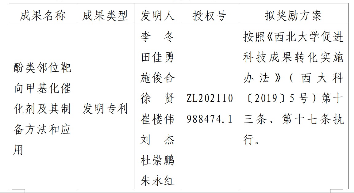 按照《开云手机网页版登录入口促进科技成果转化实施办法》(西大科〔2019〕5号)相关规定,拟对开云手机网页版登录入口化工学院李冬教授作为成果负责人的1项发明专利权实施转化,现将相关信息公示如下: