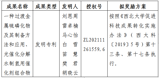 附件:拟许可成果信息及奖励方案