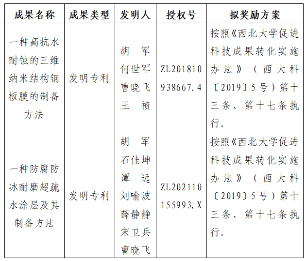 按照《开云手机网页版登录入口促进科技成果转化实施办法》(西大科〔2019〕5号)相关规定,拟对开云手机网页版登录入口化工学院胡军教授作为成果负责人的2项发明专利权实施转化,现将相关信息公示如下: