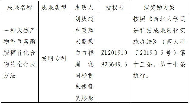 附件:拟许可成果信息及奖励方案