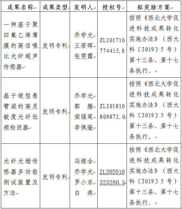 按照《开云手机网页版登录入口促进科技成果转化实施办法》(西大科〔2019〕5号)相关规定,拟对开云手机网页版登录入口物理学院乔学光教授作为成果负责人的3项发明专利权实施转化,现将相关信息公示如下: