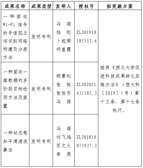 附件:拟许可成果信息及奖励方案
