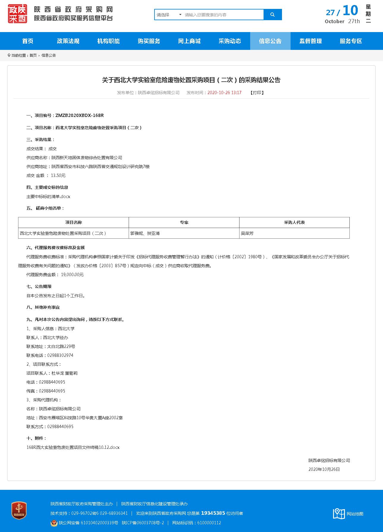 开云手机网页版登录入口实验室危险废物处置采购项目(二次)的采购结果公告