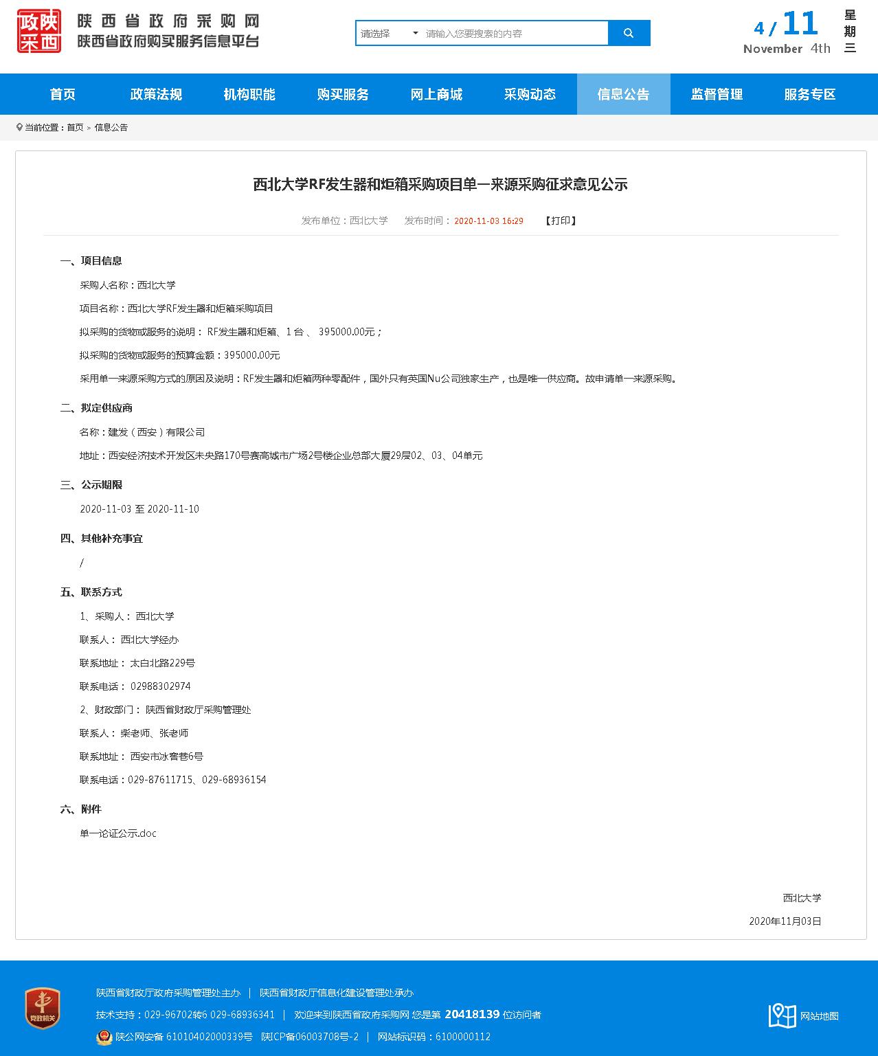 开云手机网页版登录入口RF发生器和炬箱采购项目单一来源采购征求意见公示