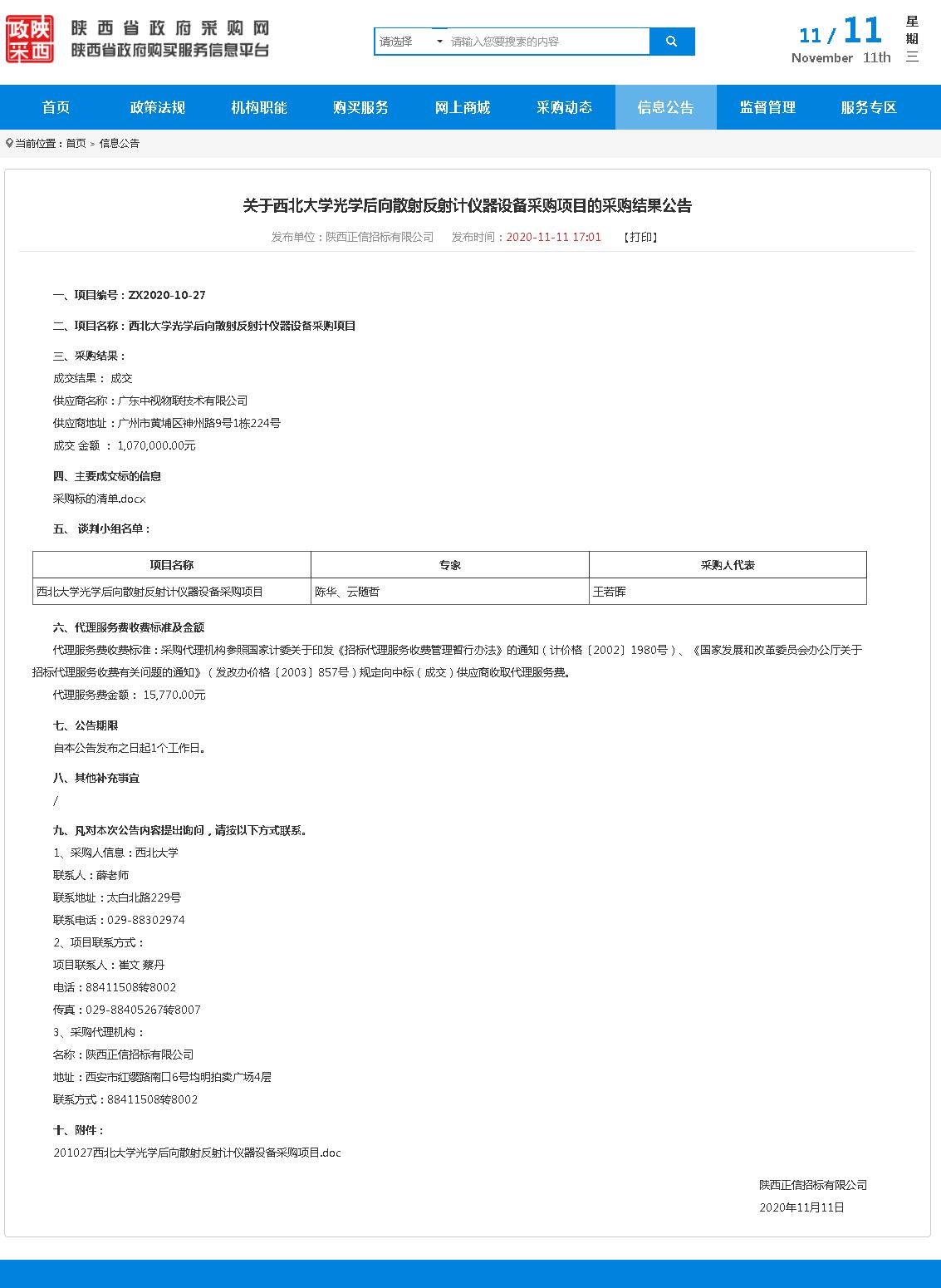 关于开云手机网页版登录入口光学后向散射反射计仪器设备采购项目的采购结果公告