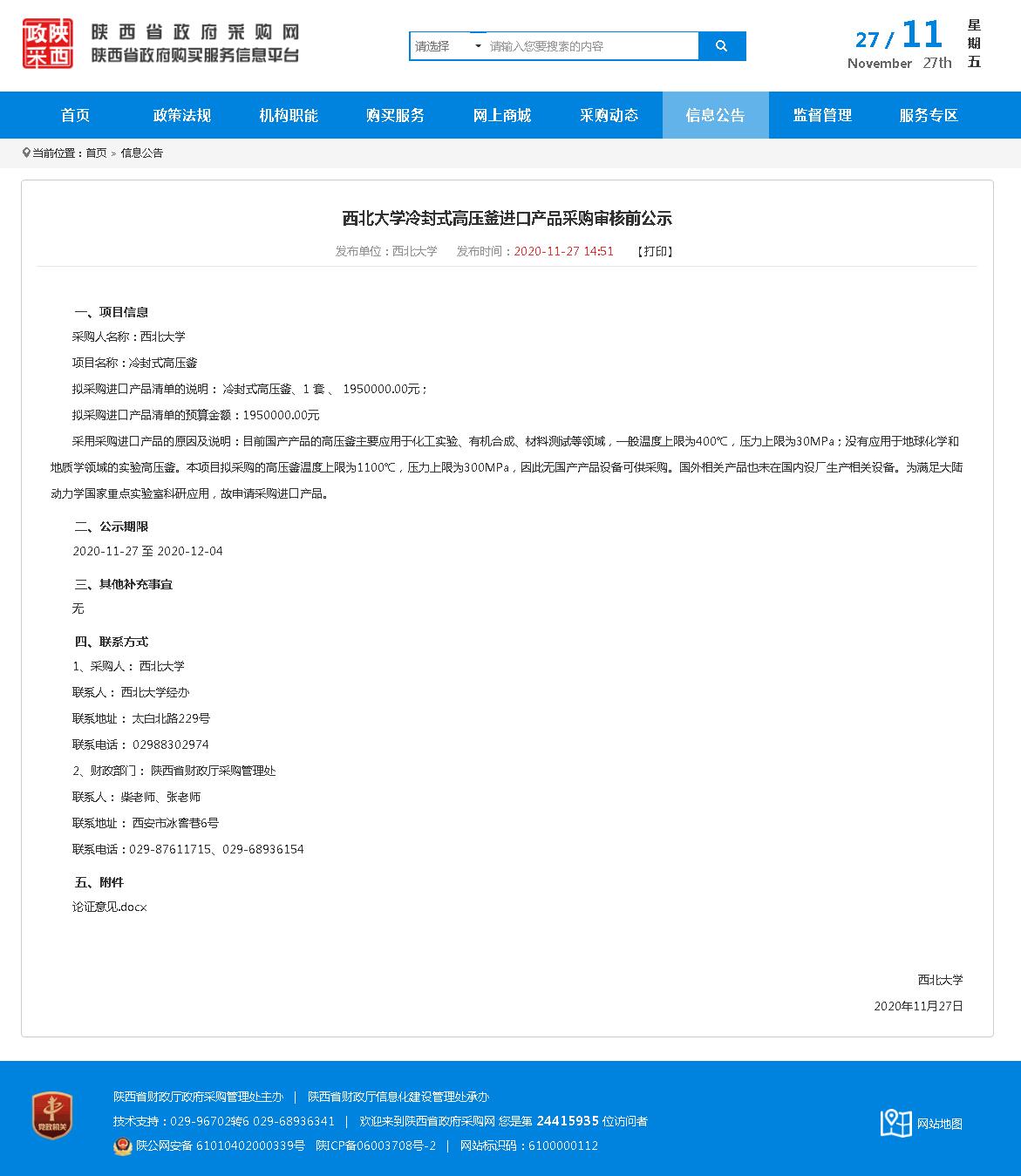 开云手机网页版登录入口冷封式高压釜进口产品采购审核前公示