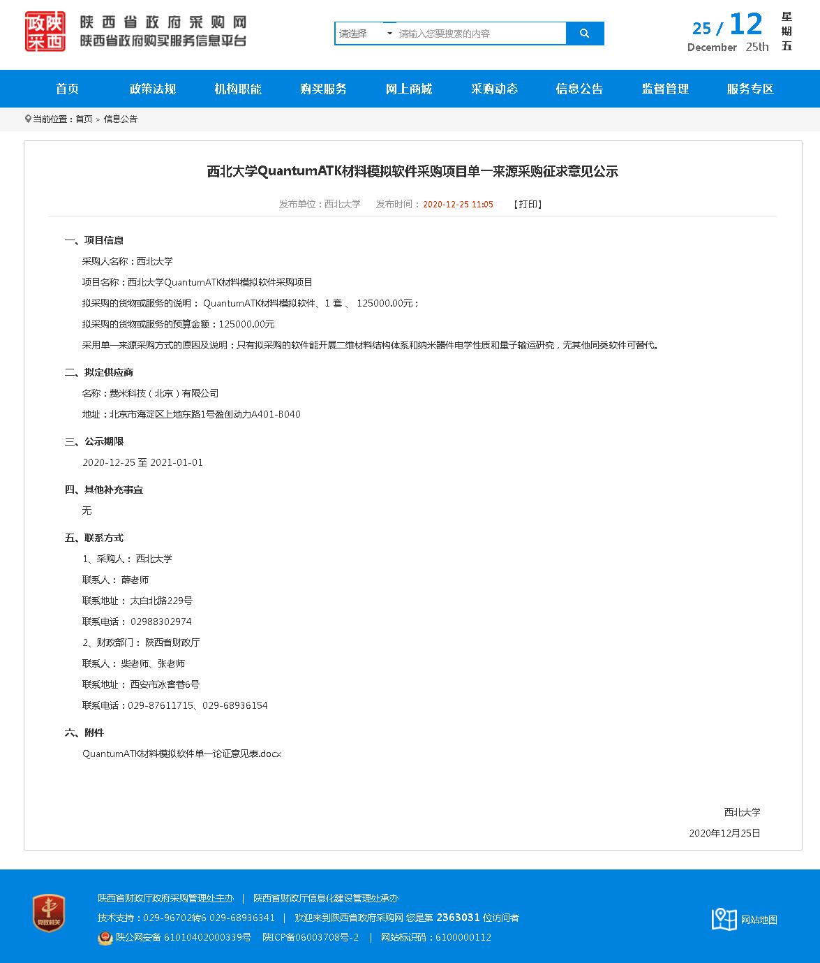 开云手机网页版登录入口QuantumATK材料模拟软件采购项目单一来源采购征求意见公示