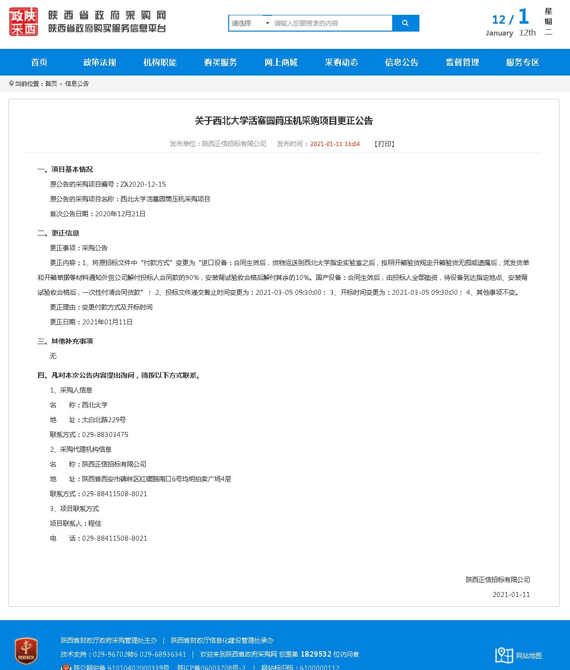 开云手机网页版登录入口活塞圆筒压机采购项目更正公告