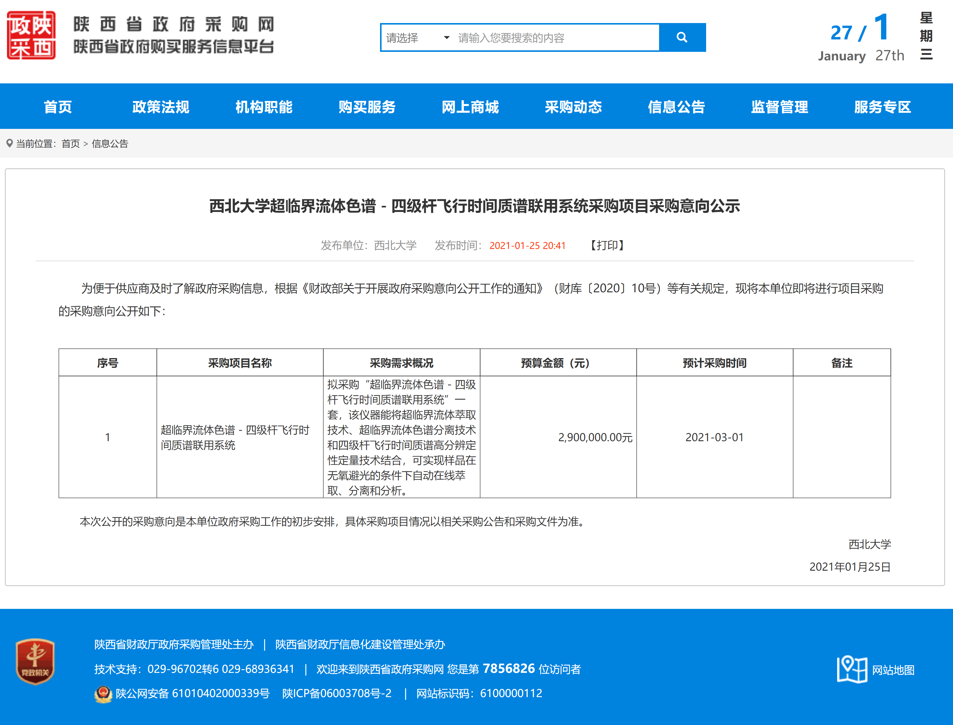 开云手机网页版登录入口超临界流体色谱-四级杆飞行时间质谱联用系统采购项目采购意向公示