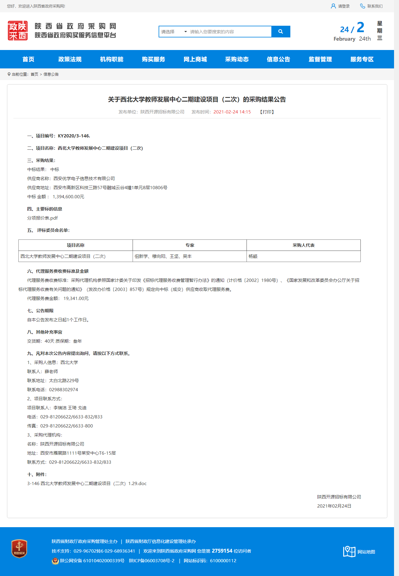 开云手机网页版登录入口教师发展中心二期建设项目(二次)的采购结果公告 作者: 编辑:薛利娟 时间:2021-02-24 原公告地址:http://www.ccgp-shaanxi.gov.cn/notice/noticeDetail.do?noticeguid=8a85be3477b2ecb70177d2a0f8a67706