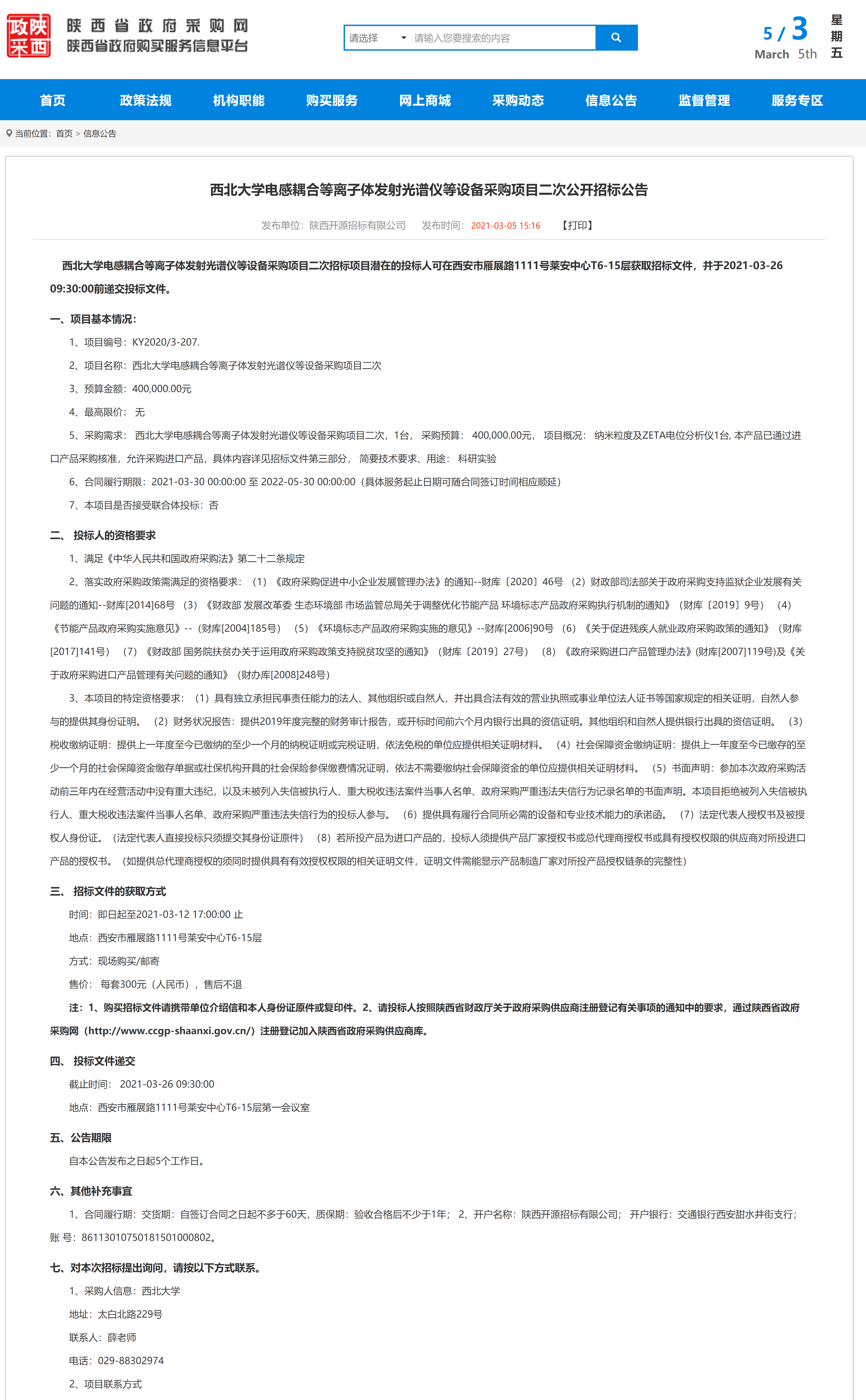 开云手机网页版登录入口电感耦合等离子体发射光谱仪等设备采购项目二次公开招标公告
