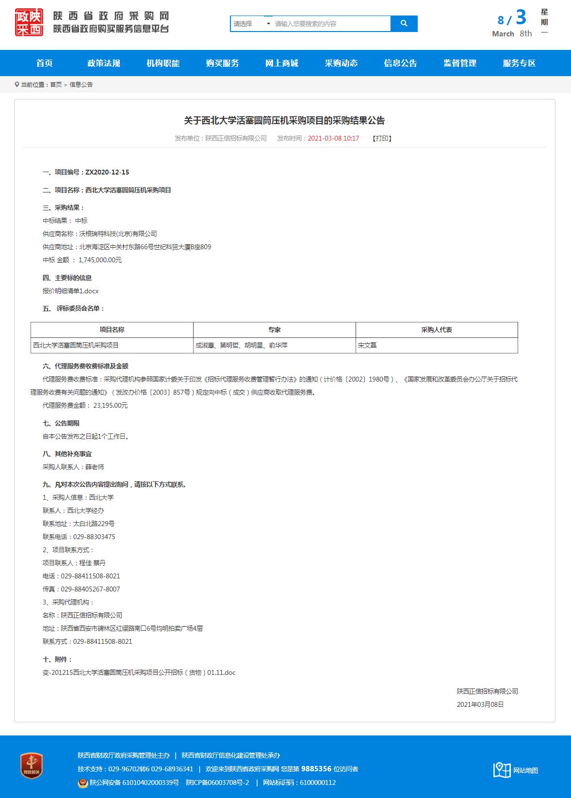 开云手机网页版登录入口活塞圆筒压机采购项目的采购结果公告