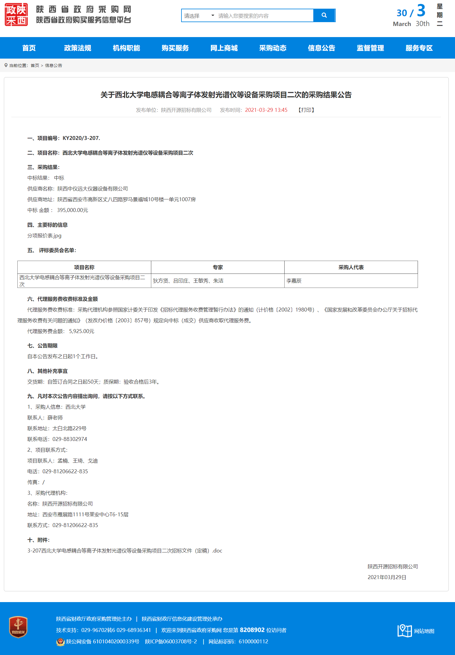 开云手机网页版登录入口电感耦合等离子体发射光谱仪等设备采购项目二次的采购结果公告