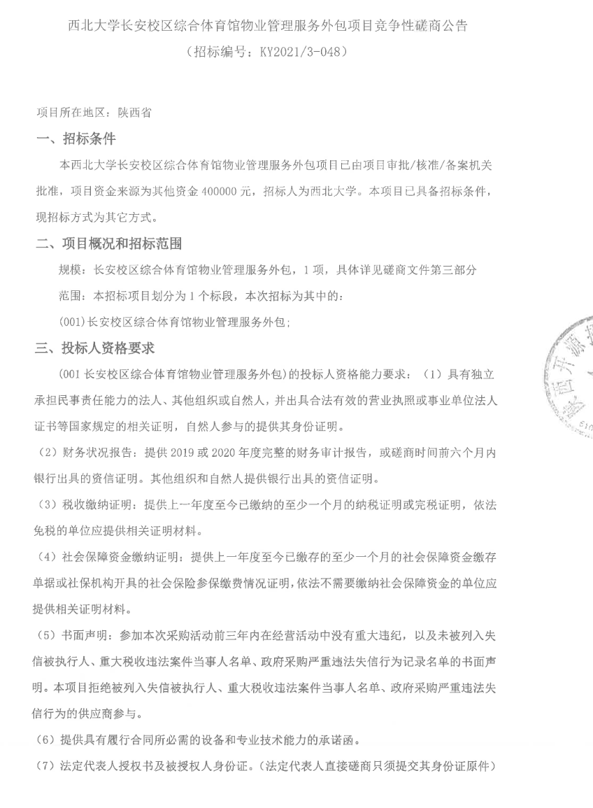 开云手机网页版登录入口长安校区综合体育馆物业管理服务外包项目竞争性磋商公告
