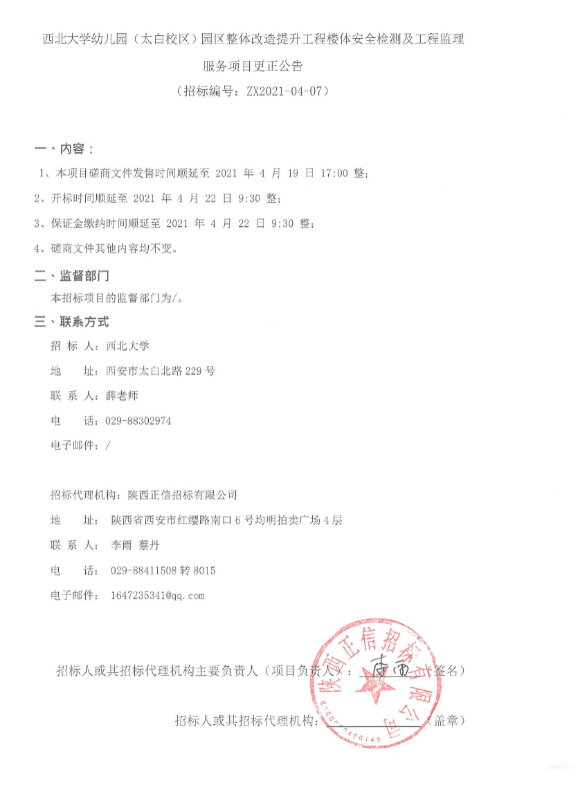 开云手机网页版登录入口幼儿园(太白校区)园区整体改造提升工程楼体安全检测及工程监理服务项目更正公告