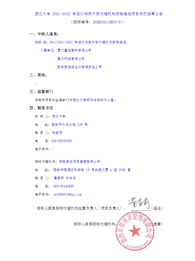开云手机网页版登录入口2021-2022年进口物资外贸代理机构资格遴选项目成交结果公告