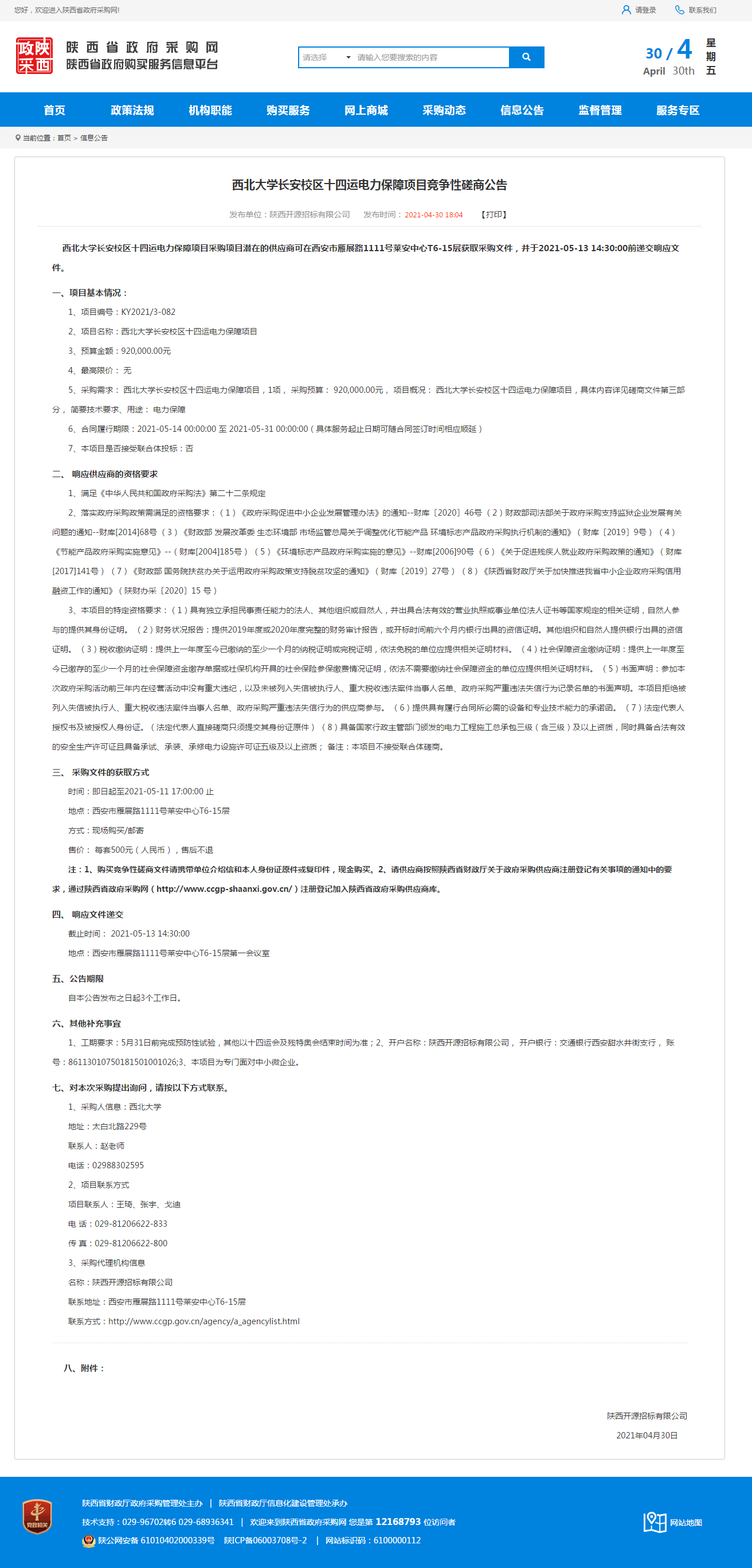 开云手机网页版登录入口长安校区十四运电力保障项目竞争性磋商公告
