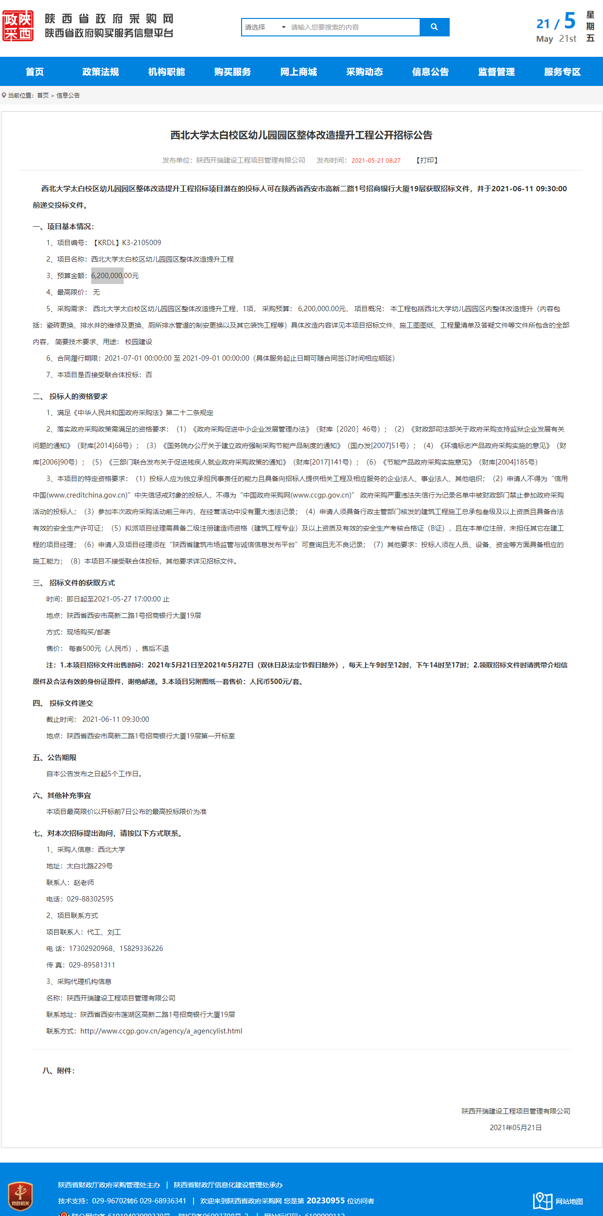 开云手机网页版登录入口太白校区幼儿园园区整体改造提升工程公开招标公告