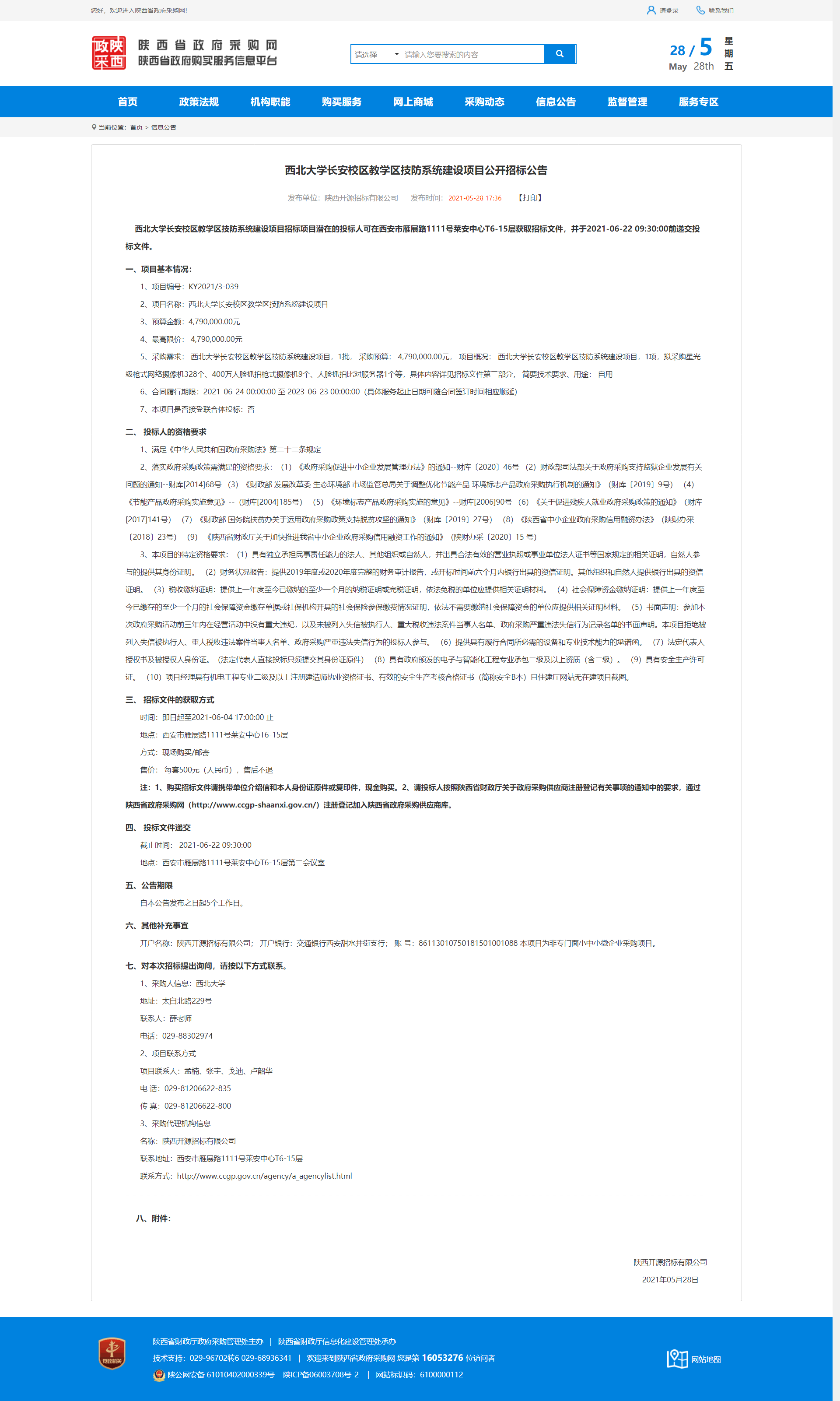开云手机网页版登录入口长安校区教学区技防系统建设项目公开招标公告 作者: 编辑:薛利娟 时间:2021-05-28 原公告地址:http://www.ccgp-shaanxi.gov.cn/notice/noticeDetail.do?noticeguid=8a85be3478a597990179b2102a6f761a