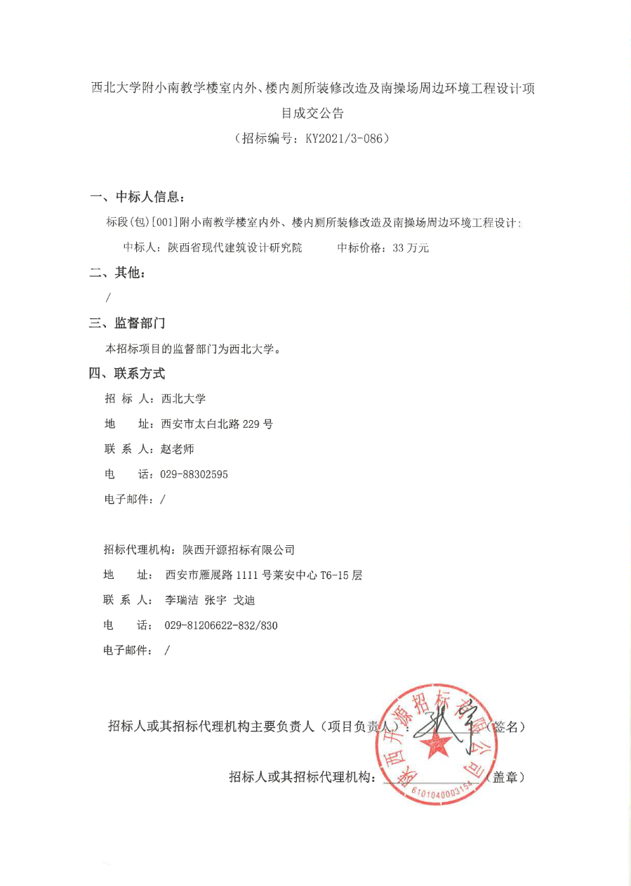 开云手机网页版登录入口附小南教学楼室内外、楼内厕所装修改造及南操场周边环境工程设计项目成交公告