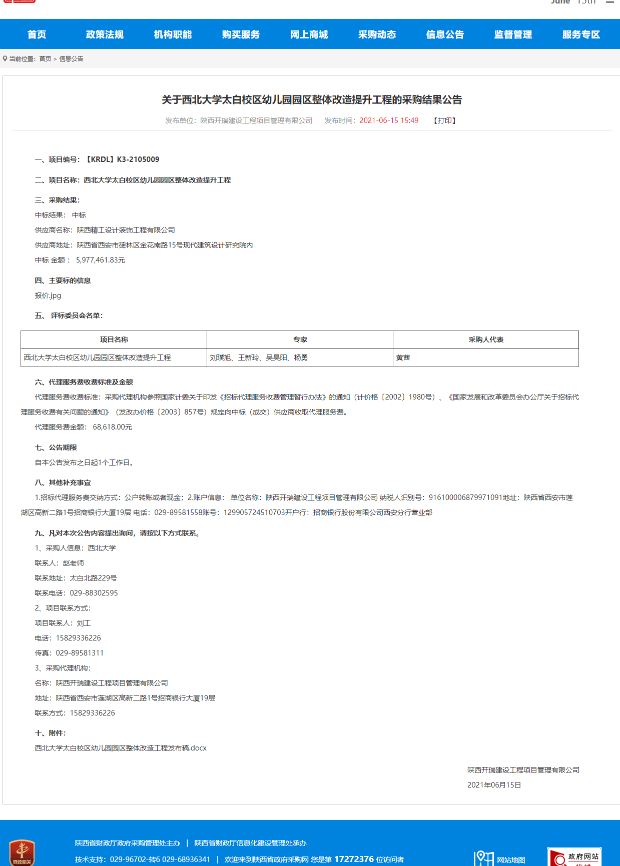 开云手机网页版登录入口太白校区幼儿园园区整体改造提升工程的采购结果公告