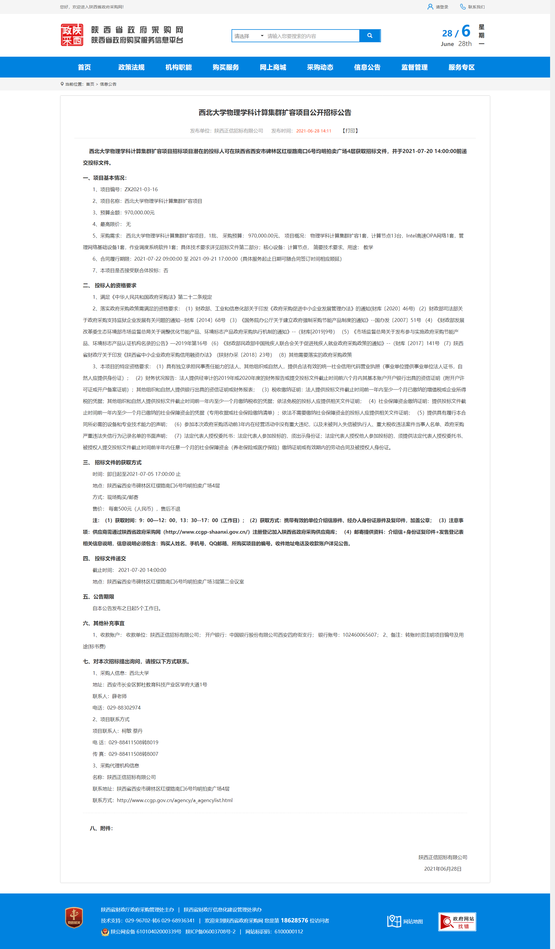 开云手机网页版登录入口物理学科计算集群扩容项目公开招标公告 作者: 编辑:采购与招标办公室 时间:2021-06-28 原公告地址:http://www.ccgp-shaanxi.gov.cn/notice/noticeDetail.do?noticeguid=8a85be33791baa0f017a50f2f9203176