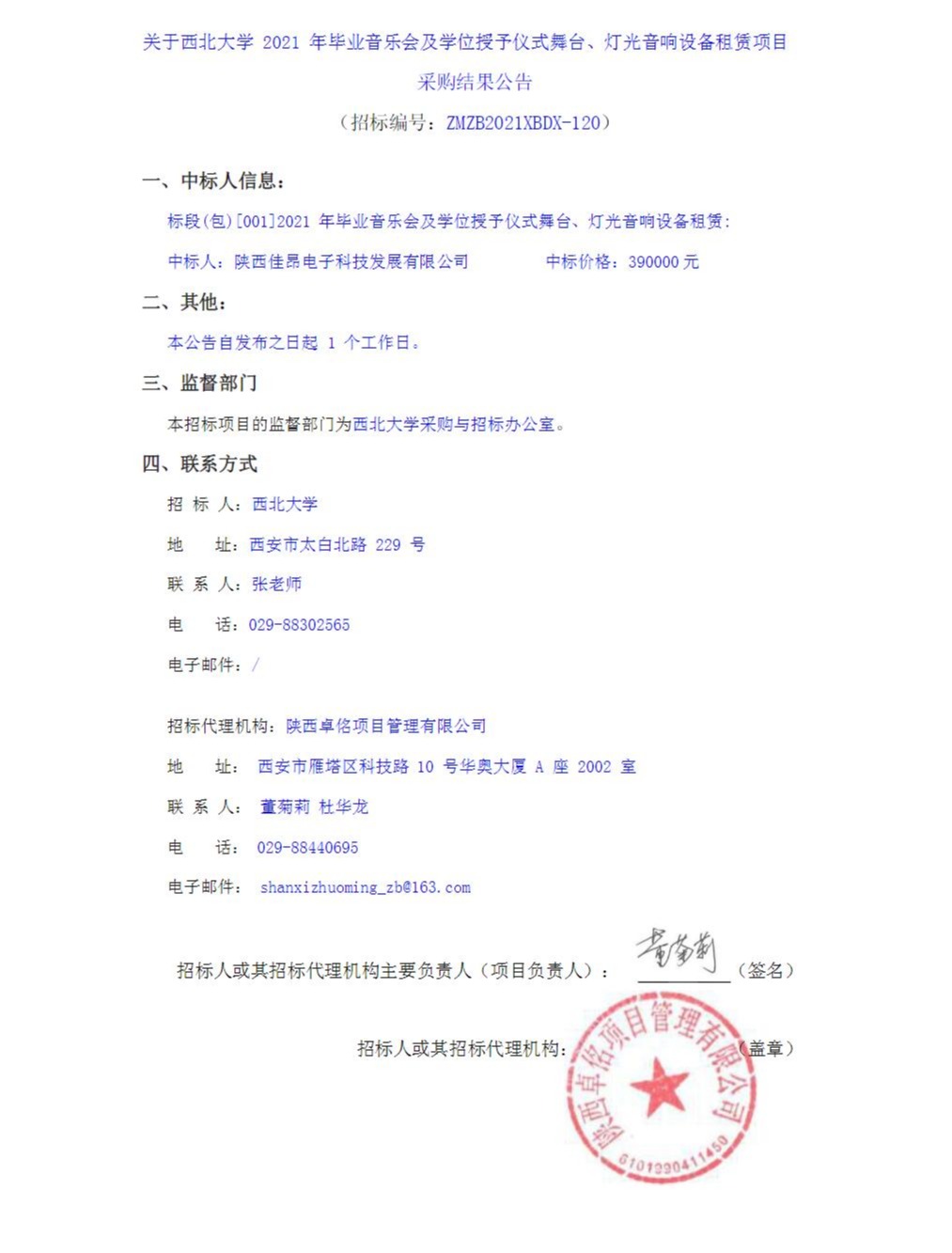 关于开云手机网页版登录入口2021年毕业音乐会及学位授予仪式舞台、灯光音响设备租赁项目采购结果公告