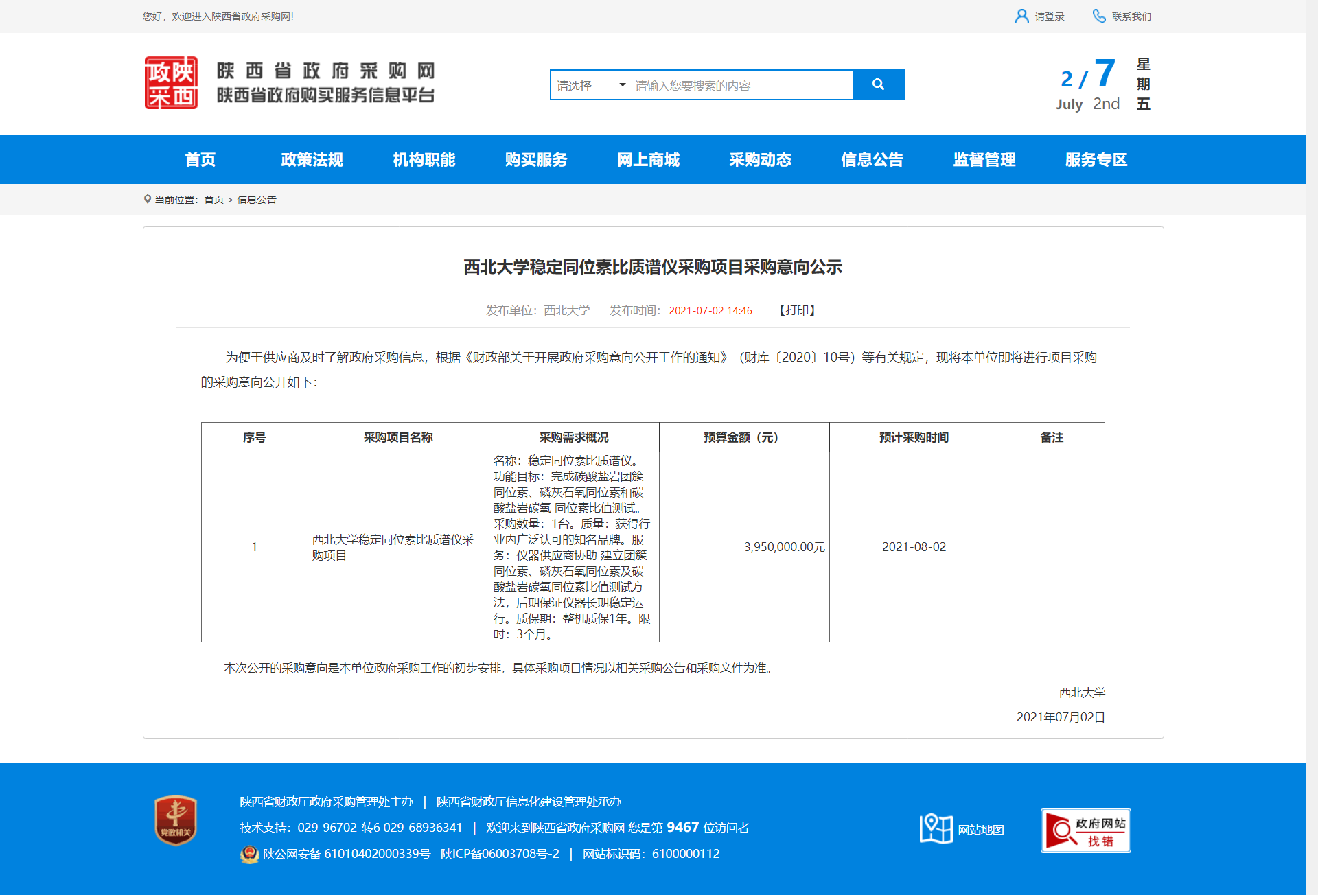 开云手机网页版登录入口稳定同位素比质谱仪采购项目采购意向公示 作者: 编辑:采购与招标办公室 时间:2021-07-02 原公告地址:http://www.ccgp-shaanxi.gov.cn/notice/noticeDetail.do?noticeguid=8a85be317a51dcbc017a65e4a5e21daf