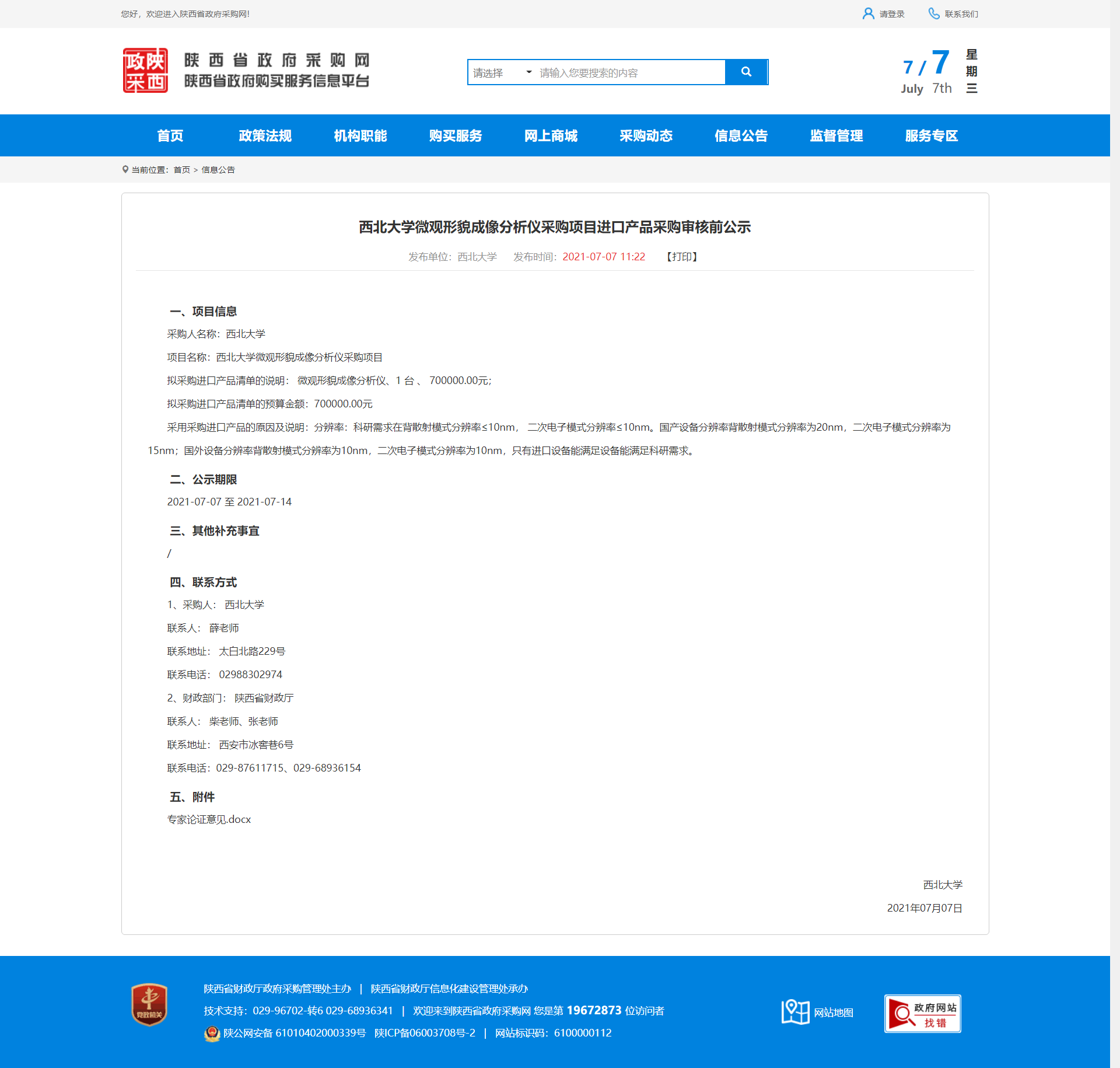 开云手机网页版登录入口微观形貌成像分析仪采购项目进口产品采购审核前公示 作者: 编辑:采购与招标办公室 时间:2021-07-07 原公告地址:http://www.ccgp-shaanxi.gov.cn/notice/noticeDetail.do?noticeguid=8a85be337a79620e017a7e92b5872d92