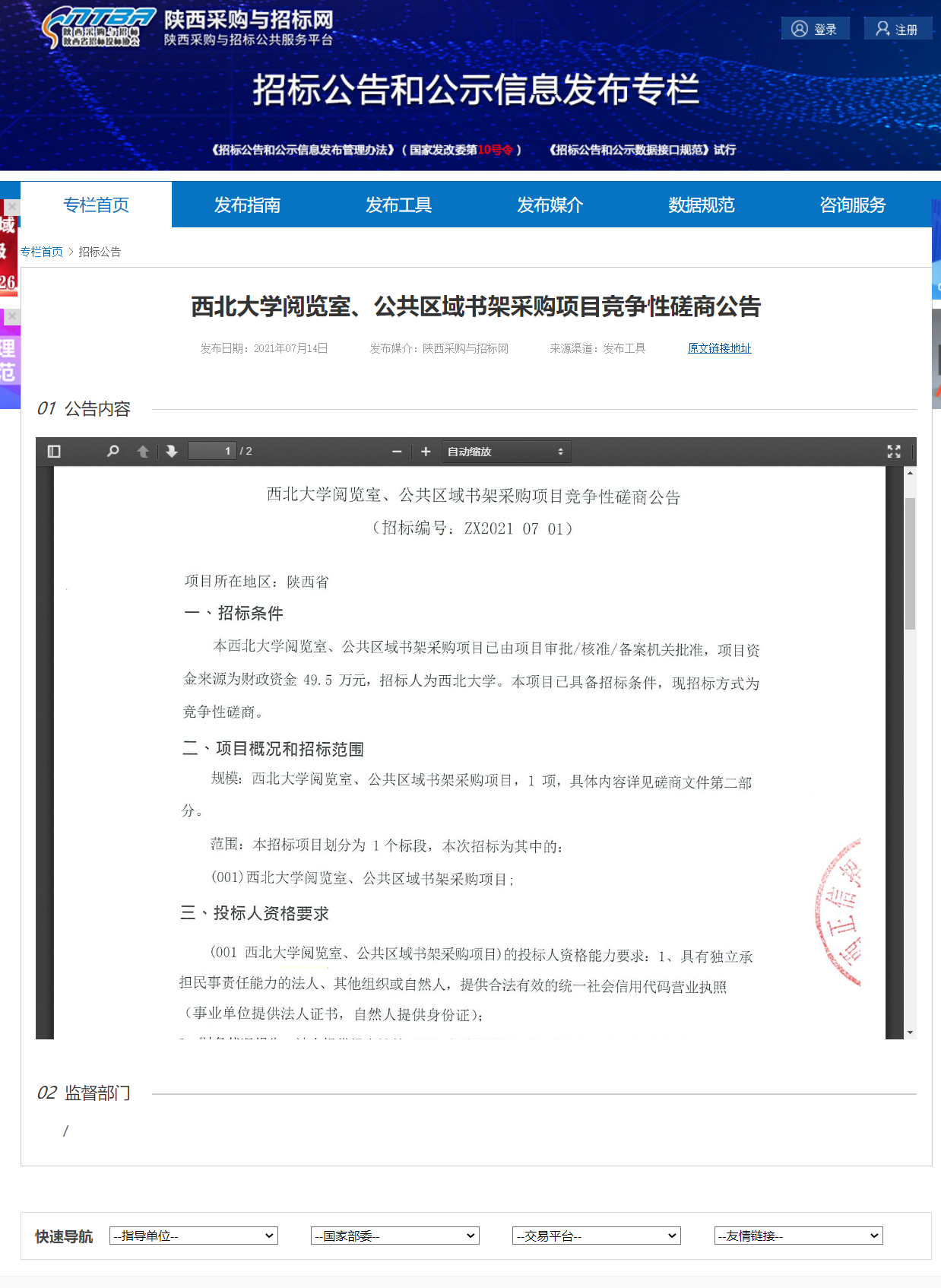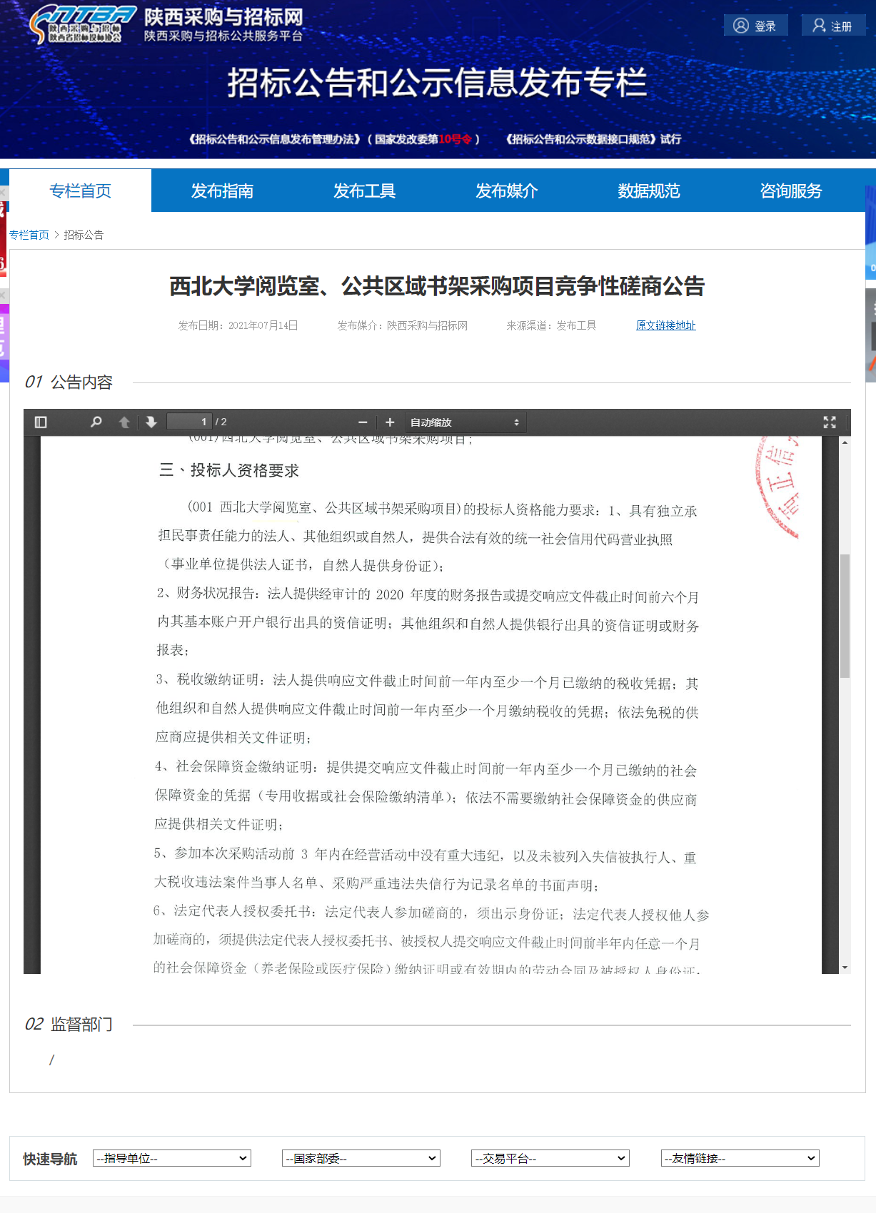 开云手机网页版登录入口阅览室、公共区域书架采购项目竞争性磋商公告 作者: 编辑:采购与招标办公室 时间:2021-07-15 原公告地址:http://bulletin.sntba.com/biddingBulletin/2021-07-14/318895.html
