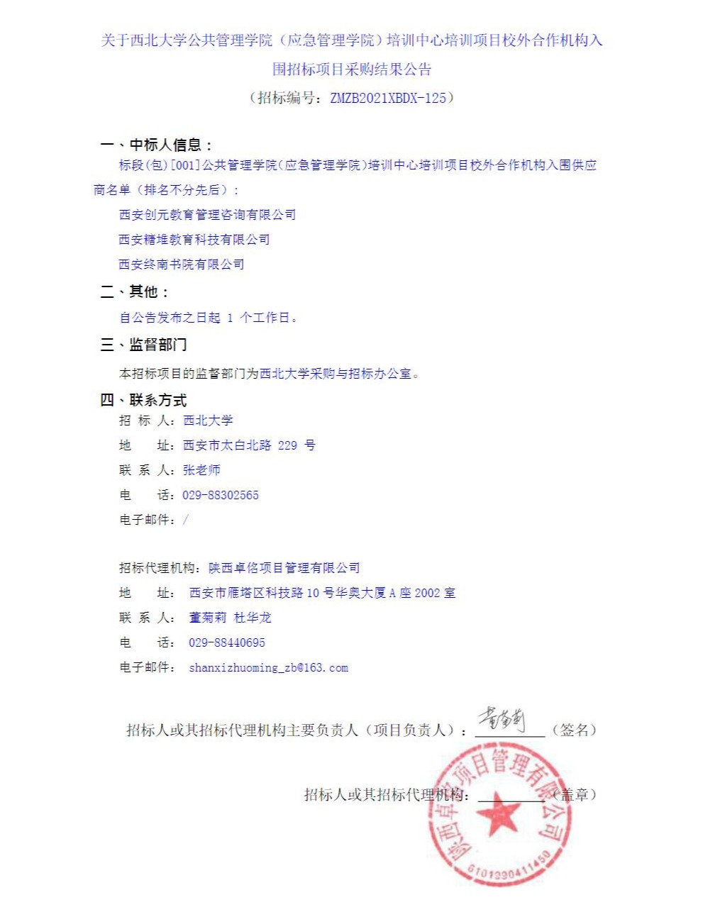关于开云手机网页版登录入口公共管理学院(应急管理学院)培训中心培训项目校外合作机构入围招标项目采购结果公告
