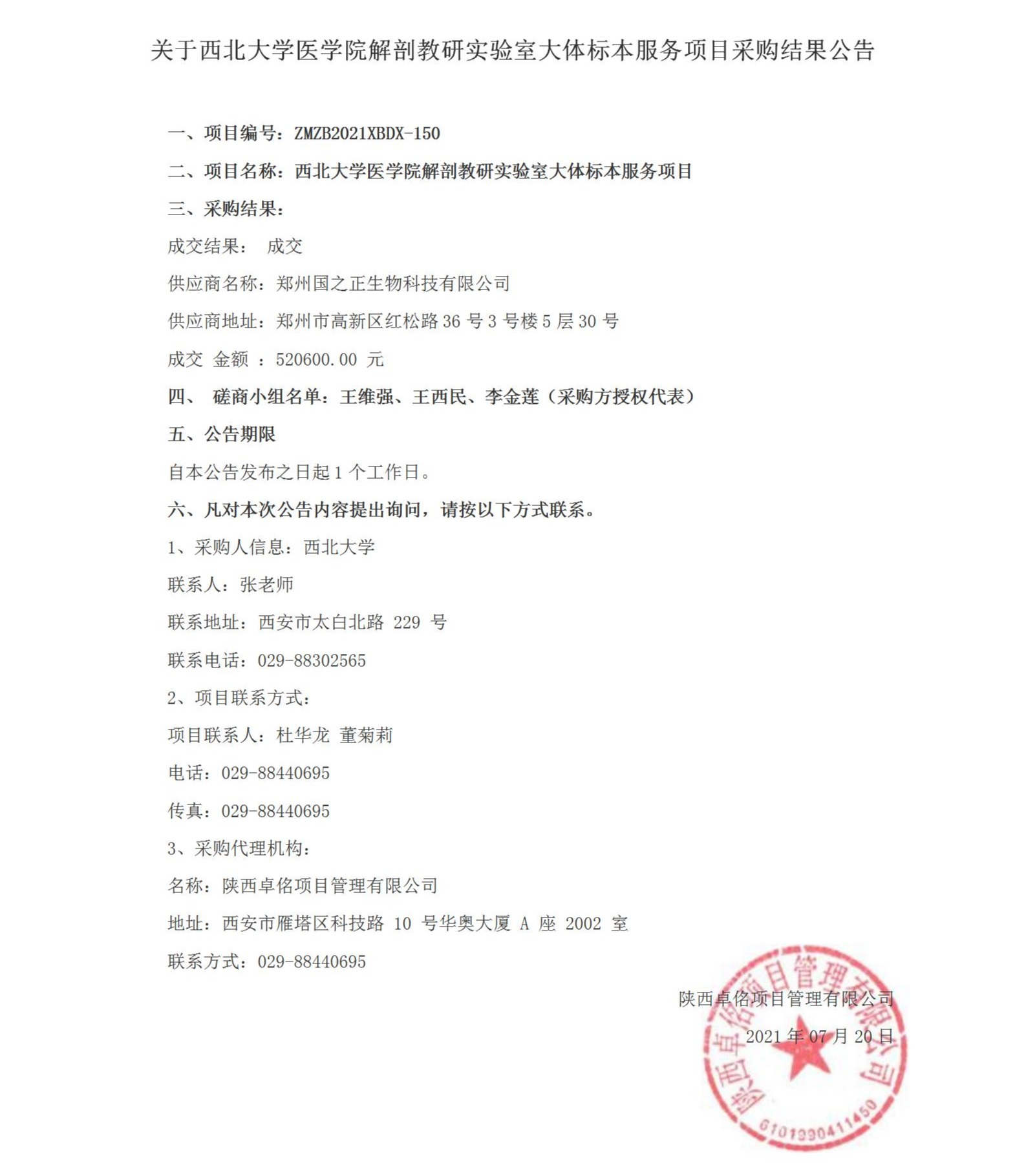 关于开云手机网页版登录入口医学院解剖教研实验室大体标本服务项目采购结果公告