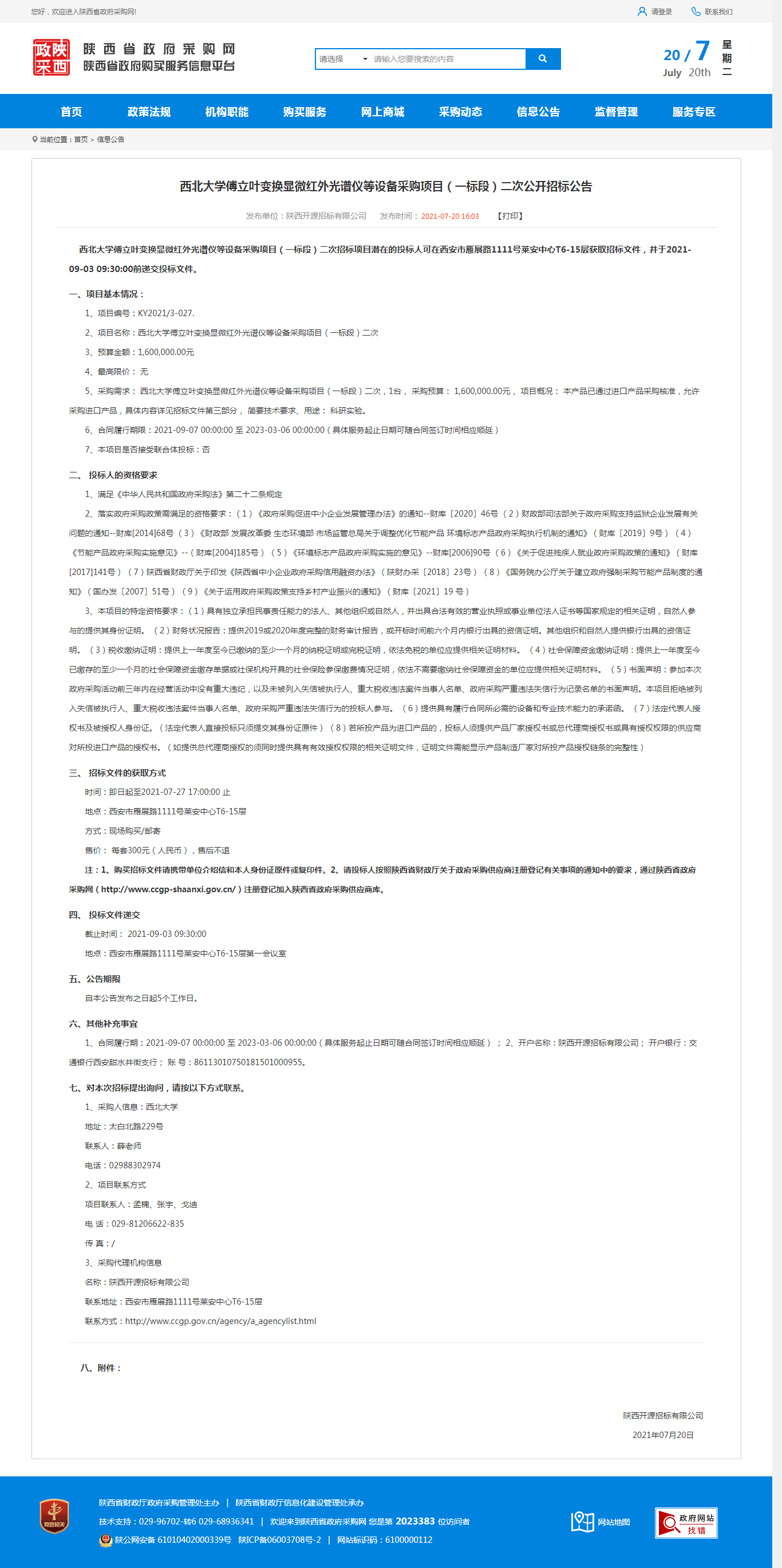 开云手机网页版登录入口傅立叶变换显微红外光谱仪等设备采购项目(一标段)二次公开招标公告 作者: 编辑:采购与招标办公室 时间:2021-07-20 原公告地址:http://www.ccgp-shaanxi.gov.cn/notice/noticeDetail.do?noticeguid=8a85be337a79620e017ac245c8027b46