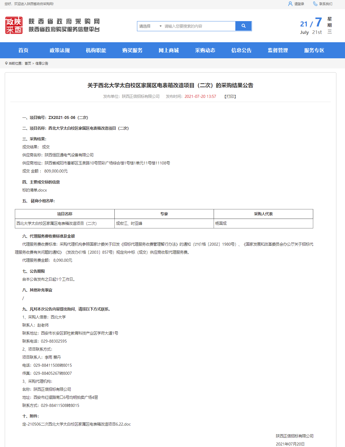 关于开云手机网页版登录入口太白校区家属区电表箱改造项目(二次)的采购结果公告