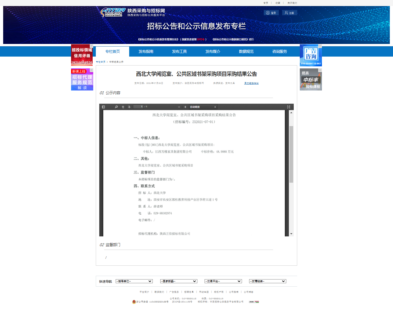 开云手机网页版登录入口阅览室、公共区域书架采购项目采购结果公告 作者: 编辑:采购与招标办公室 时间:2021-07-26 原公告地址:http://bulletin.sntba.com/resultBulletin/2021-07-26/323301.html