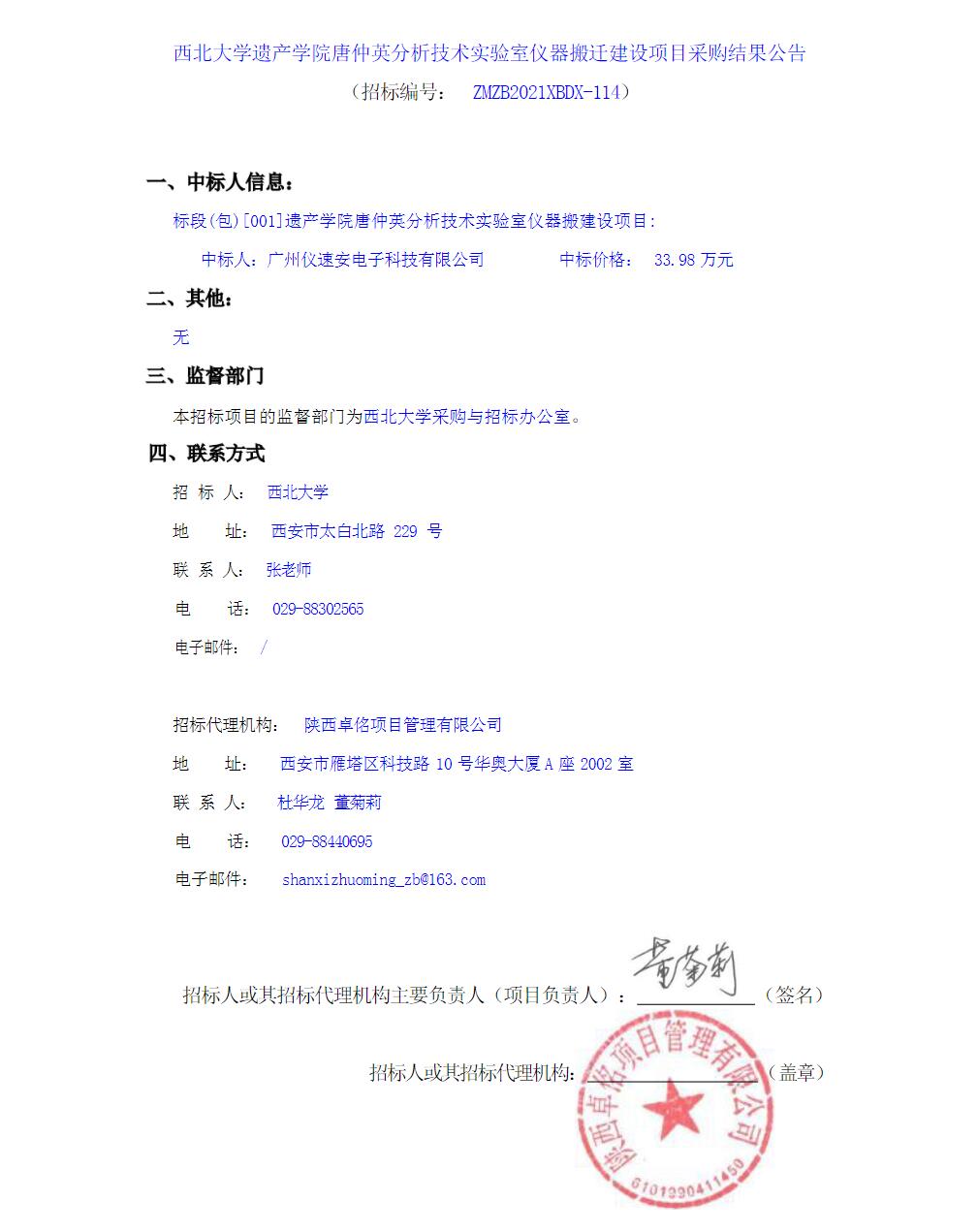 关于开云手机网页版登录入口遗产学院唐仲英分析技术实验室仪器搬迁建设项目采购结果公告
