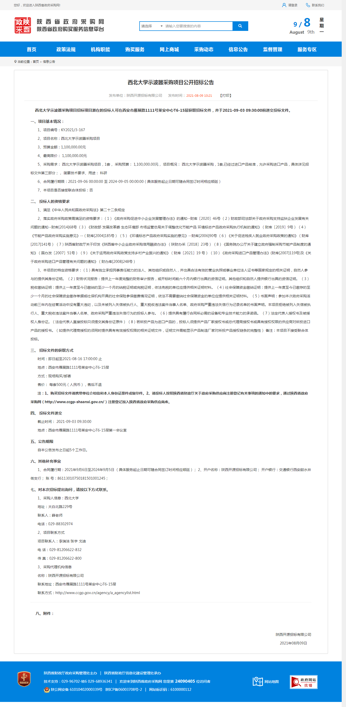 开云手机网页版登录入口示波器采购项目公开招标公告 作者: 编辑:采购与招标办公室 时间:2021-08-09 原公告地址:http://www.ccgp-shaanxi.gov.cn/notice/noticeDetail.do?noticeguid=8a85be347b04610d017b28a3aa0f0939