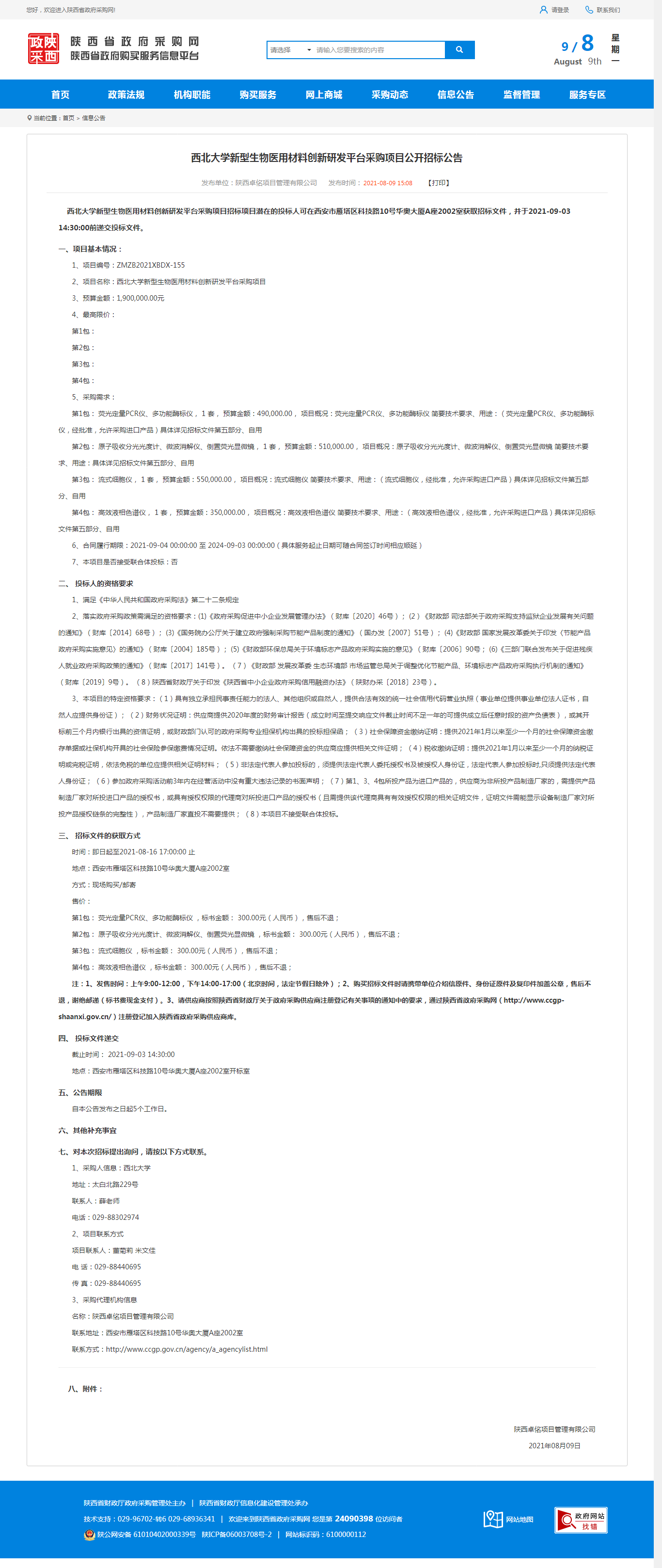 开云手机网页版登录入口新型生物医用材料创新研发平台采购项目公开招标公告 作者: 编辑:采购与招标办公室 时间:2021-08-09 原公告地址:http://www.ccgp-shaanxi.gov.cn/notice/noticeDetail.do?noticeguid=8a85be347b04610d017b2980fd8a15b4