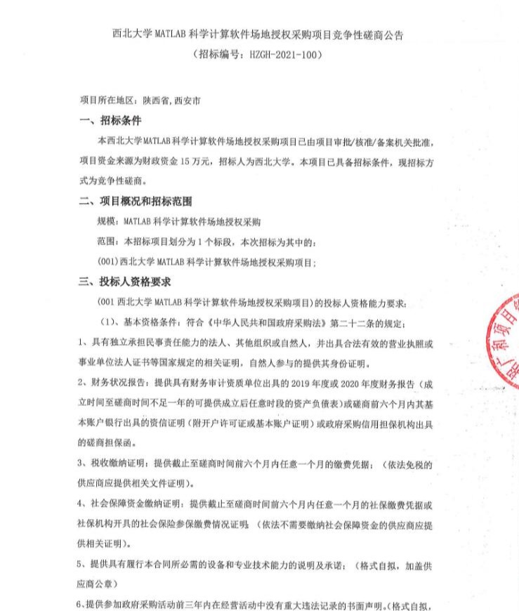 关于开云手机网页版登录入口MATLAB科学计算软件场地授权采购项目竞争性磋商公告