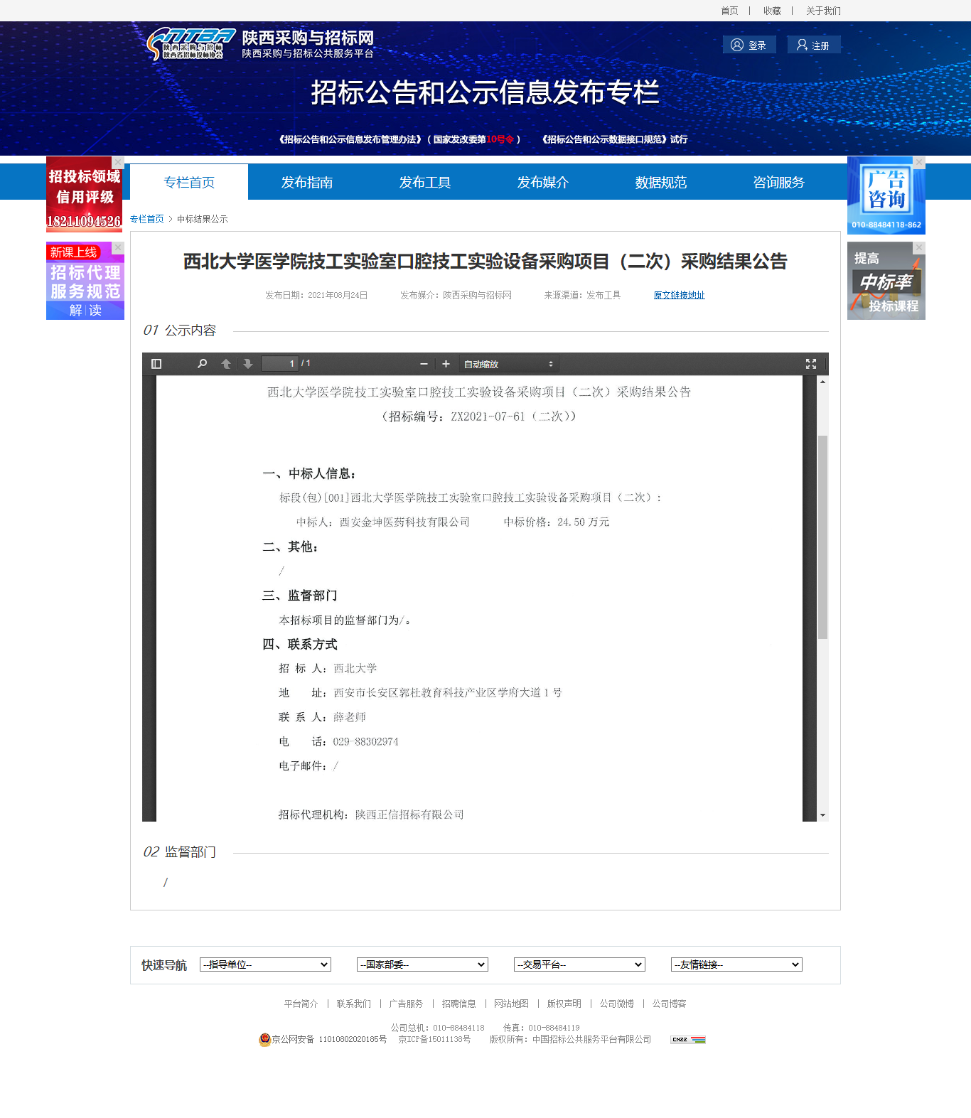 开云手机网页版登录入口医学院技工实验室口腔技工实验设备采购项目(二次)采购结果公告 作者: 编辑:采购与招标办公室 时间:2021-08-24 原公告地址:http://bulletin.sntba.com/resultBulletin/2021-08-24/334778.html