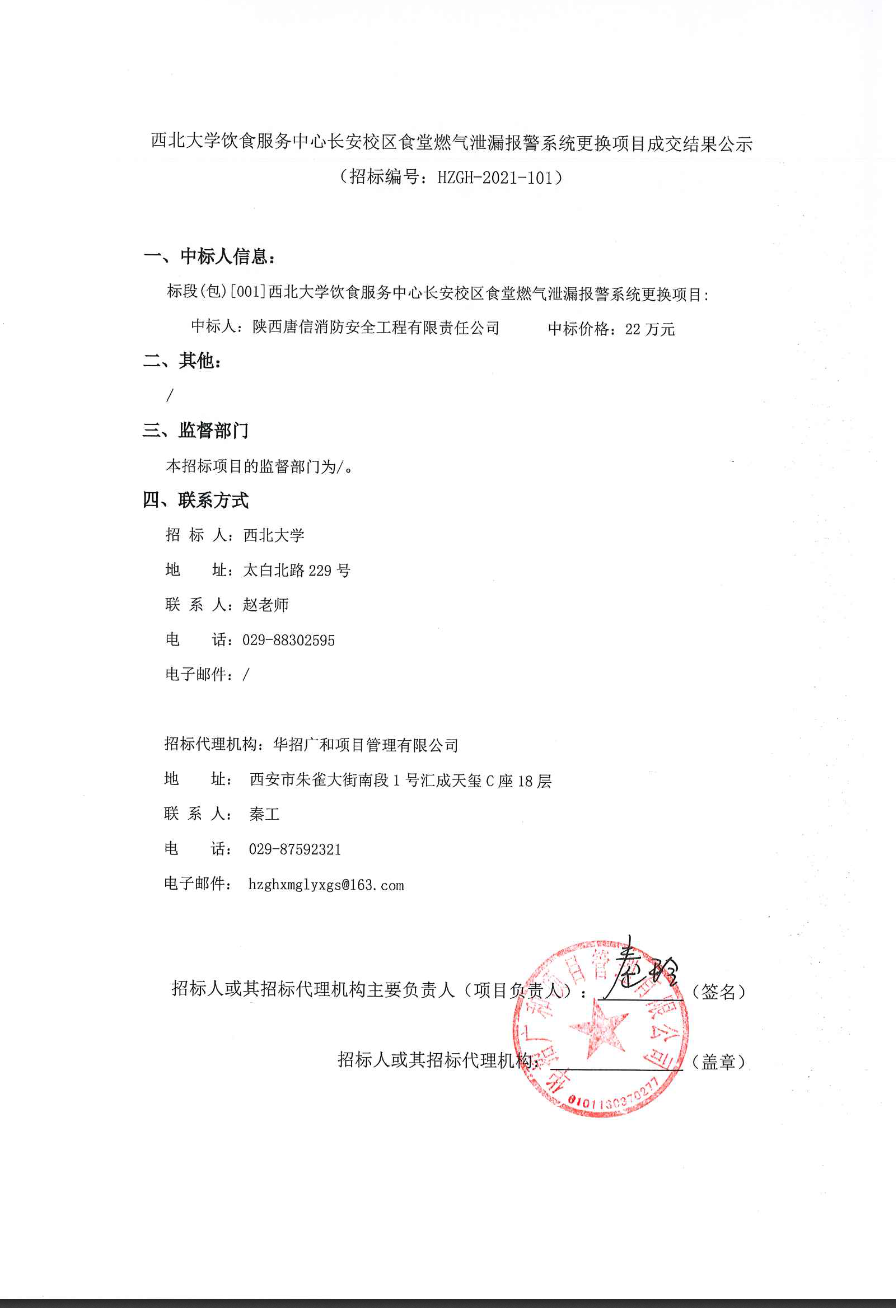开云手机网页版登录入口饮食服务中心长安校区食堂燃气泄漏报警系统更换项目成交结果公示