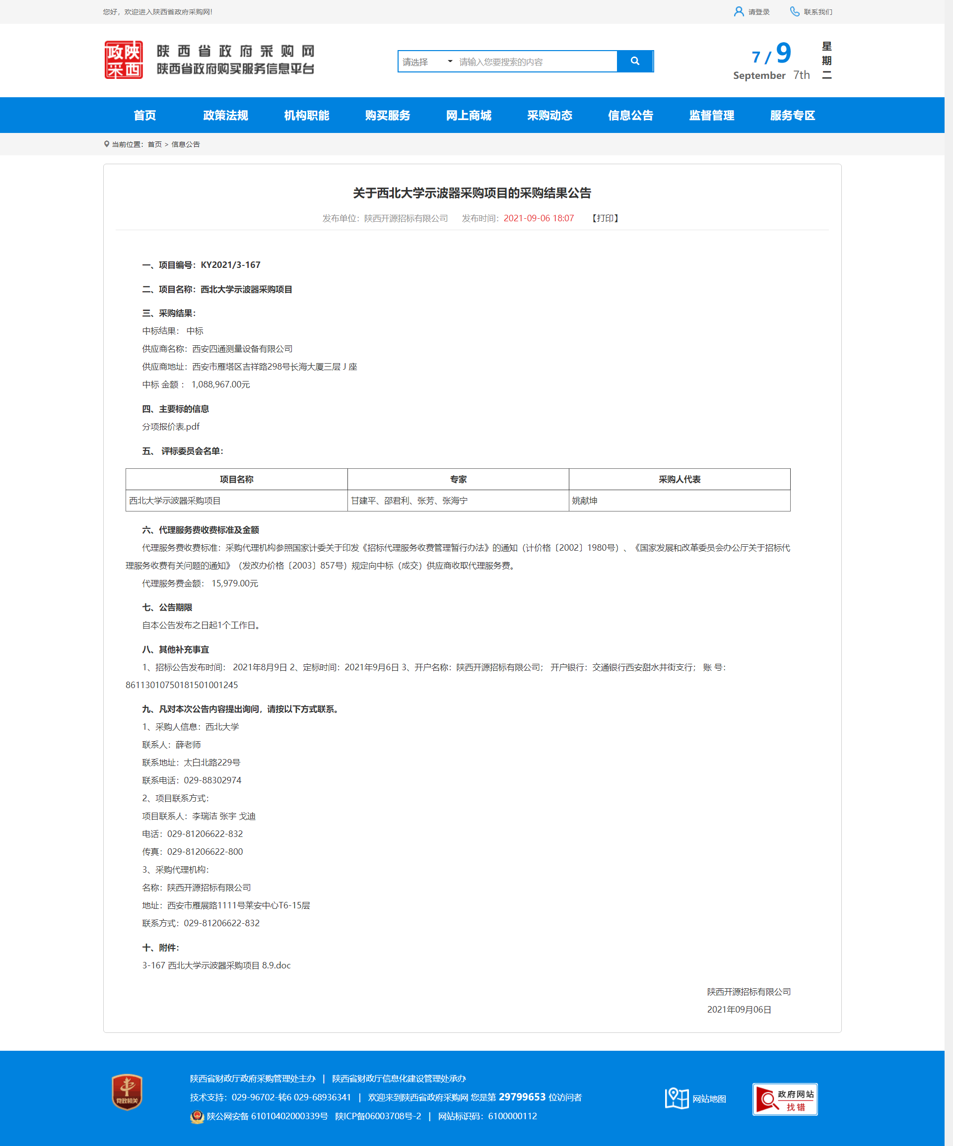 关于开云手机网页版登录入口示波器采购项目的采购结果公告 作者: 编辑:采购与招标办公室 时间:2021-09-07 原公告地址:http://www.ccgp-shaanxi.gov.cn/notice/noticeDetail.do?noticeguid=8a85be347b04610d017bba92520e4e63